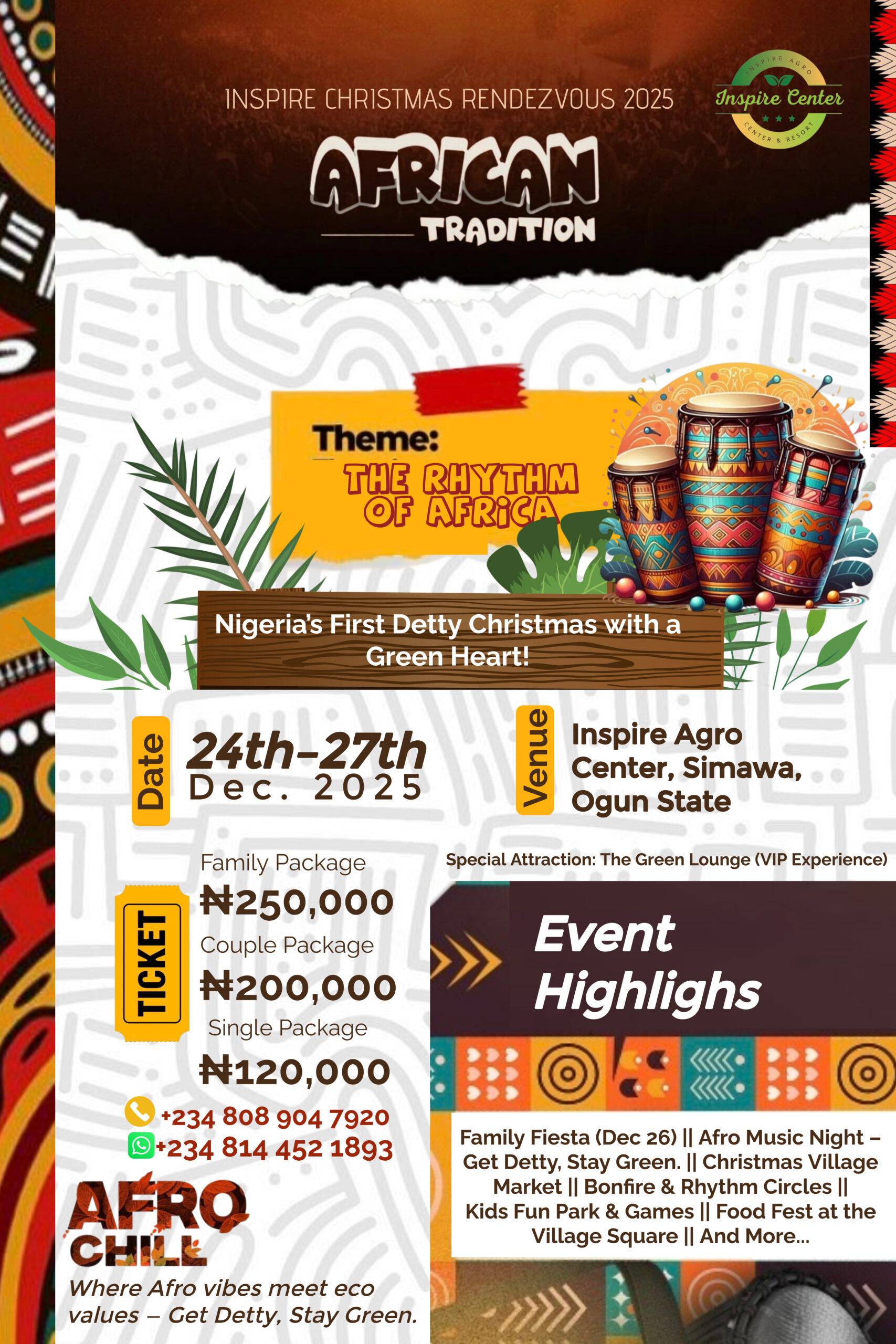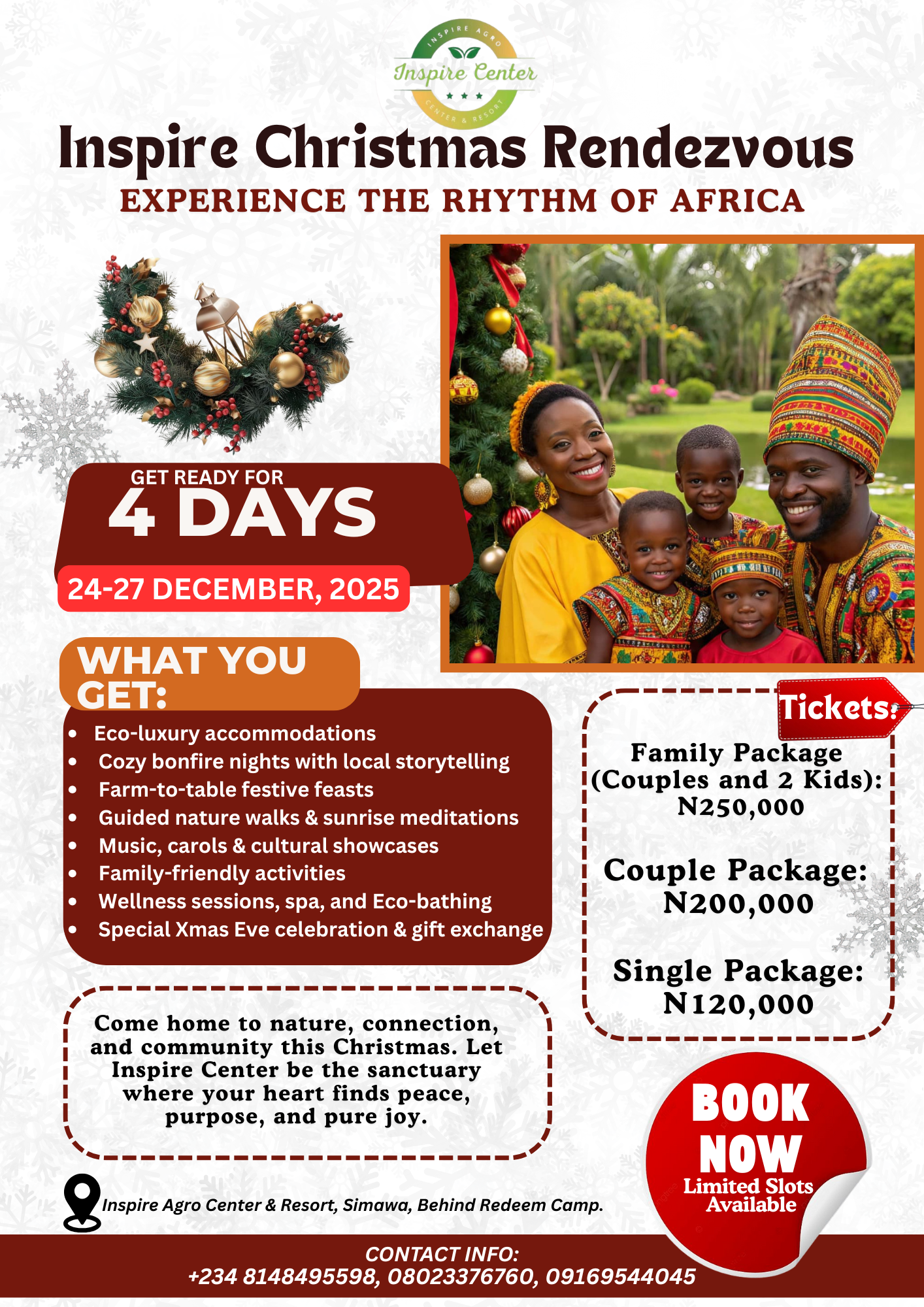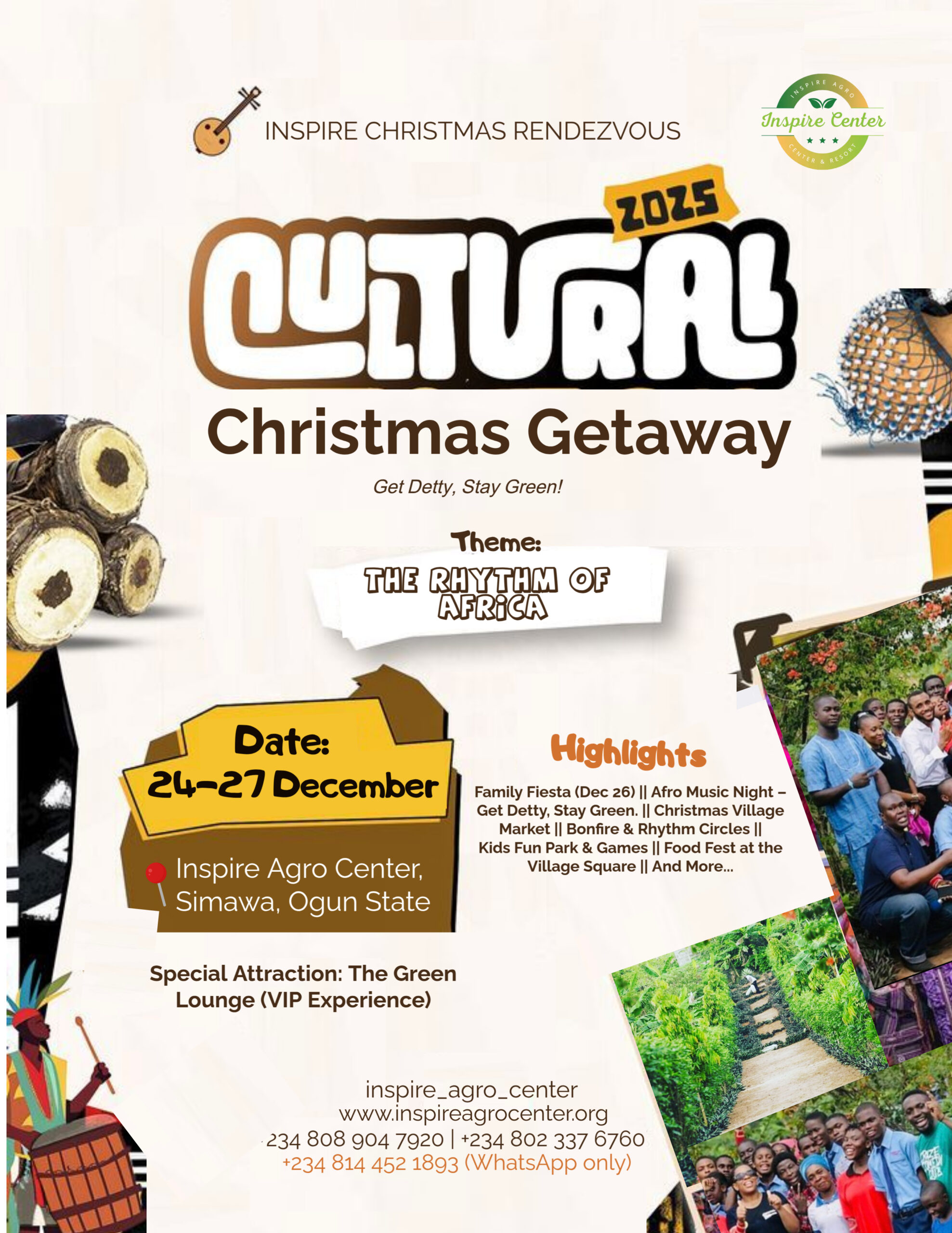 Inspire Agro Center & Resort is a pioneering hub for sustainable agriculture, eco-innovation, and regenerative living, located in the serene community of Simawa, Ogun State, Nigeria. Founded with a vision to transform how communities grow, live, and connect with nature, we integrate modern agro-technologies with time-tested, earth-friendly practices.